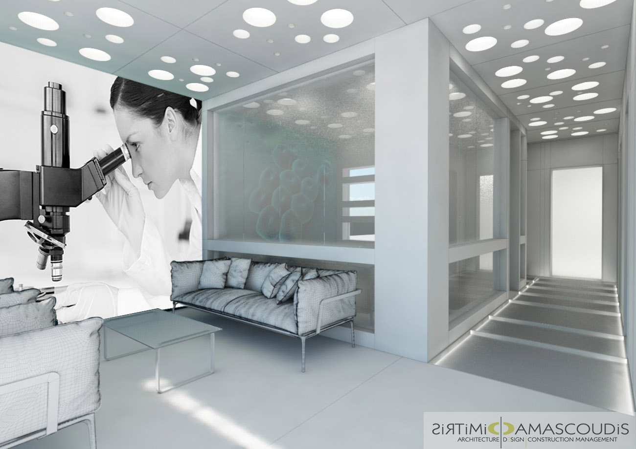 Ο σχεδιασμός του γραφείου εντός του Μικροβιολογικού Κέντρου επιλύει επιτυχώς τον υψηλό βαθμό δυσκολίας που απαιτεί ένας χώρος υγείας, συνδυάζοντας την αυστηρή λειτουργικότητα με μια ήρεμη και καθαρή αισθητική.